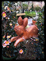 I jokingly voted to place this flying pig/rabbit deal by her spot, for obvious reasons. But daddy made a good point. After saying she was probably in heaven chasing bunnies, he realized you probably can't really "hunt" bunnies, as it is heaven, so figured they were probably just playing tag haha! Whatever she's doing, I'm positive she's happy and being loved while she waits for us. Our little beast was one happy, energetic, perpetually playful puppy her whole life. To mark her special place, mama picked out this perfect small bird bath, and I found this sweet "Heaven on Earth" stone. Perfect for our Caramel girl~